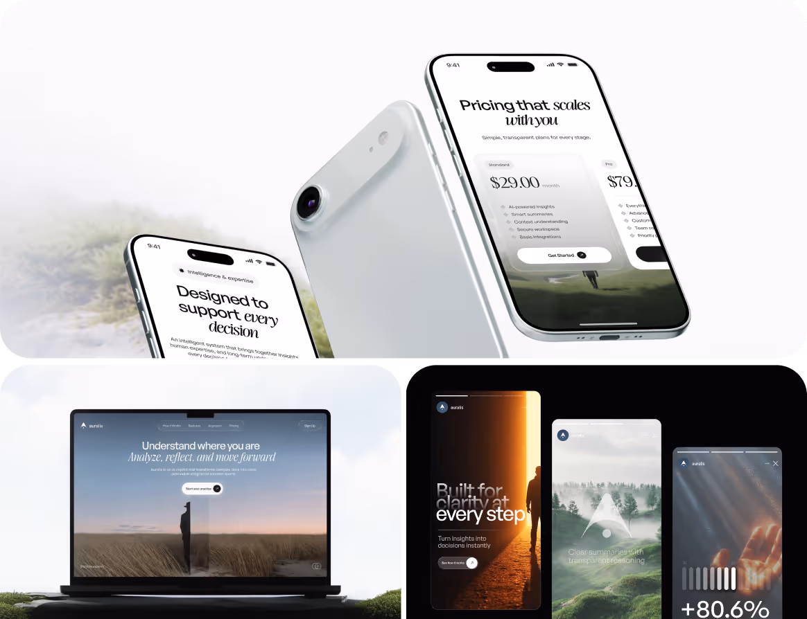 - Created brand identity, landing page, and social materials that position Auralis apart from typical data-heavy AI products.
