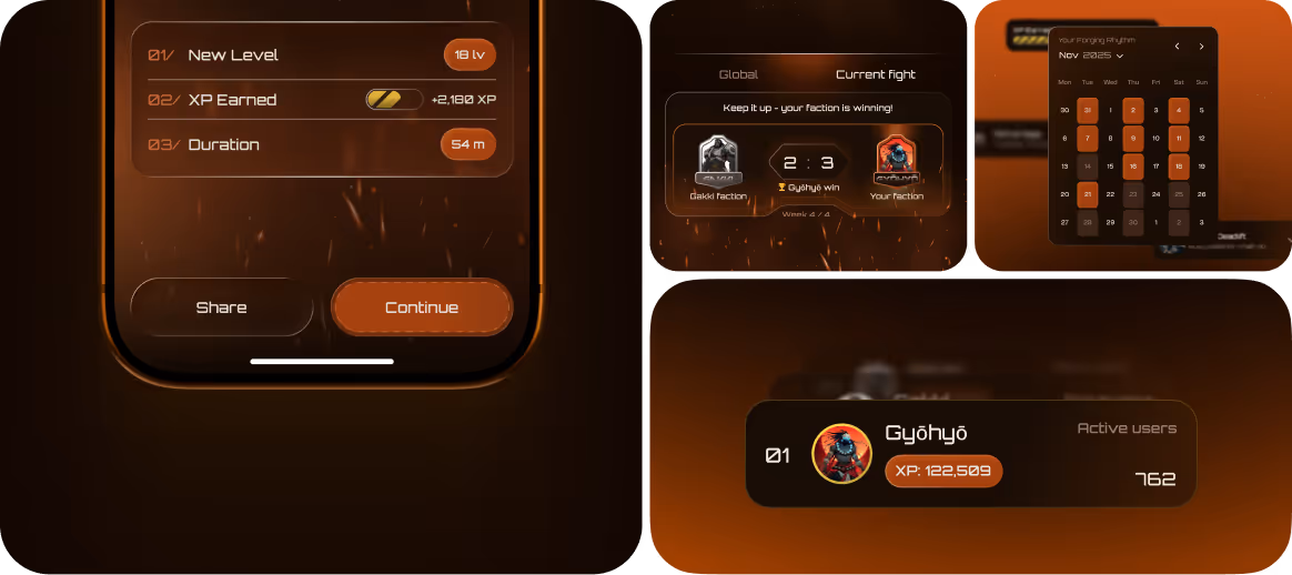 - Designed the mobile training experience around a simple progression logic: workout → measurement → XP → rank.