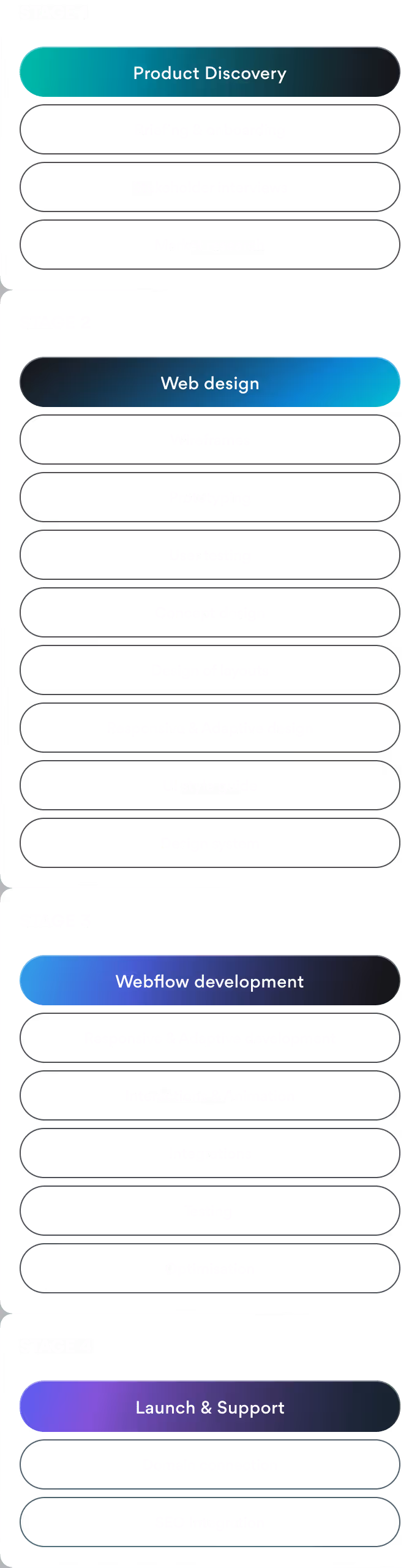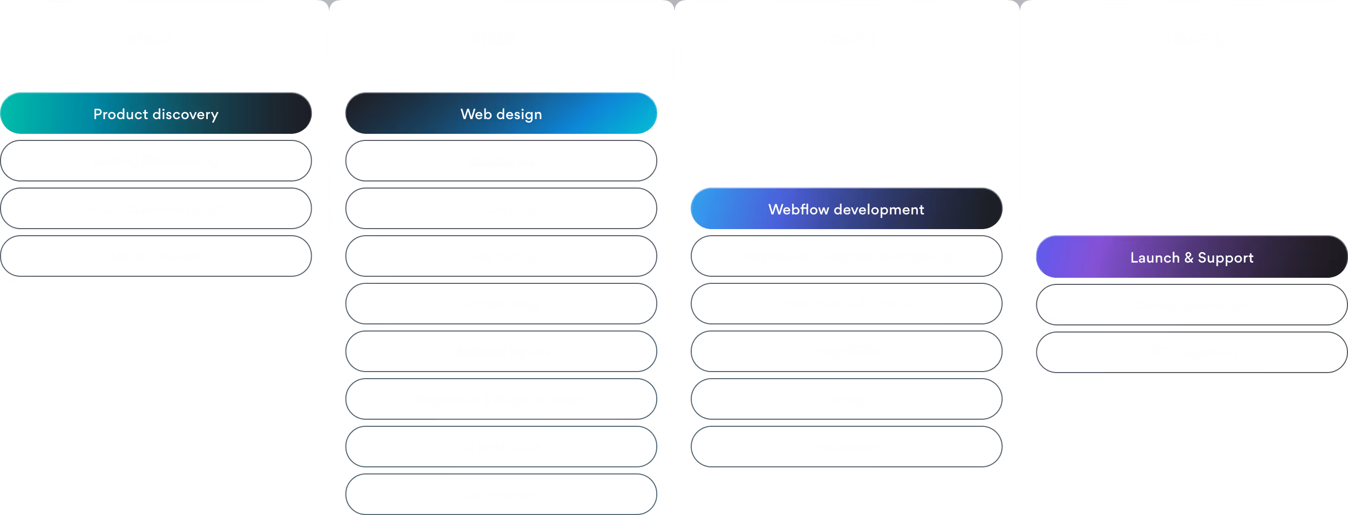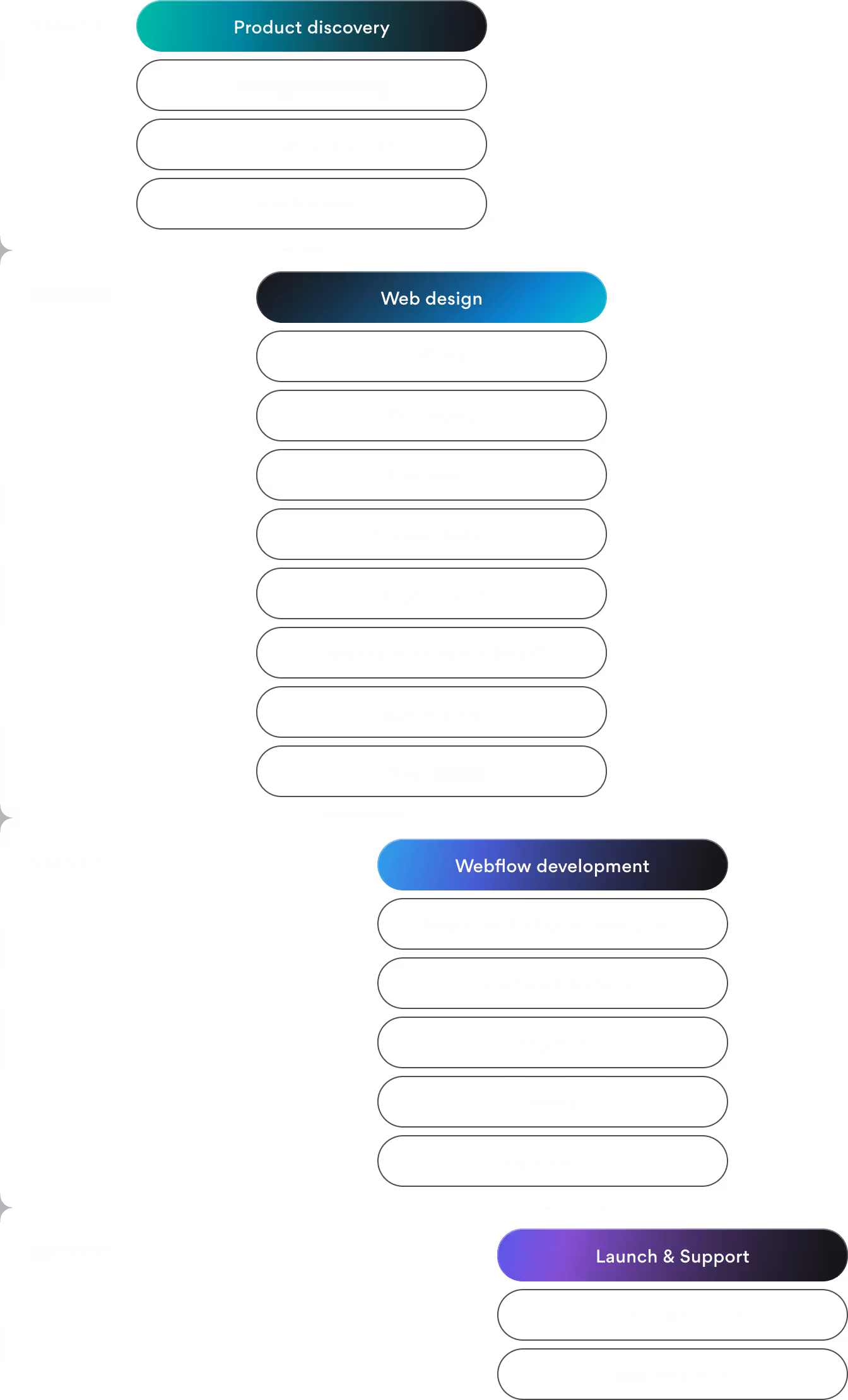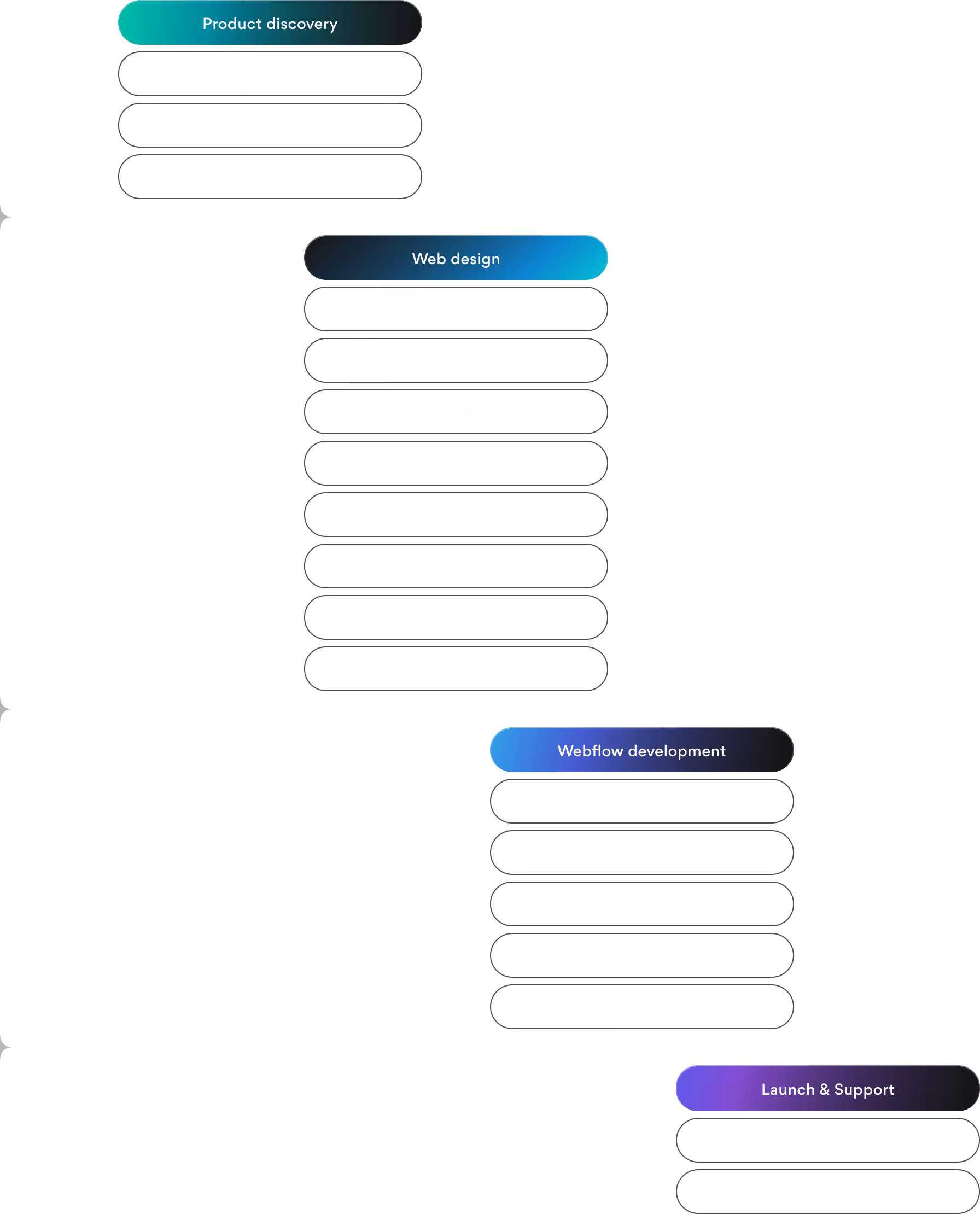 - Maintenance: Support beyond go-live.Our team can stay involved after launch to help you add pages, refine UX, improve messaging, and scale your CMS when you need to add new items. Your team can also get our best guidance if they are afraid of navigating Webflow alone.