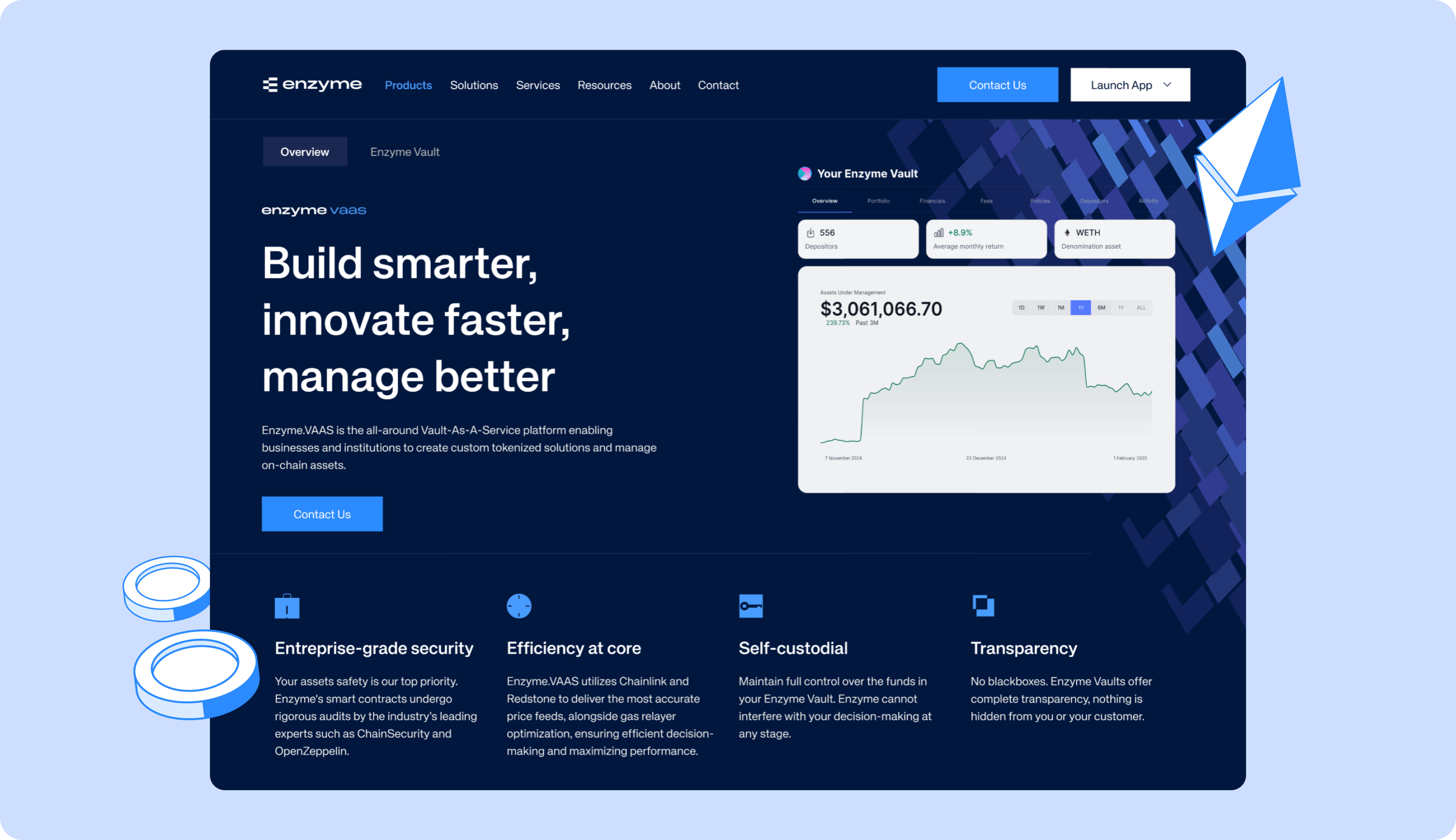 Our web design reflects Enzyme’s core values: precision, control, and modern finance. Custom animations, modular illustrations, interactive data visuals, and a storytelling approach became our key tools to set this Web3 platform apart and build trustworthy, simple user experiences.