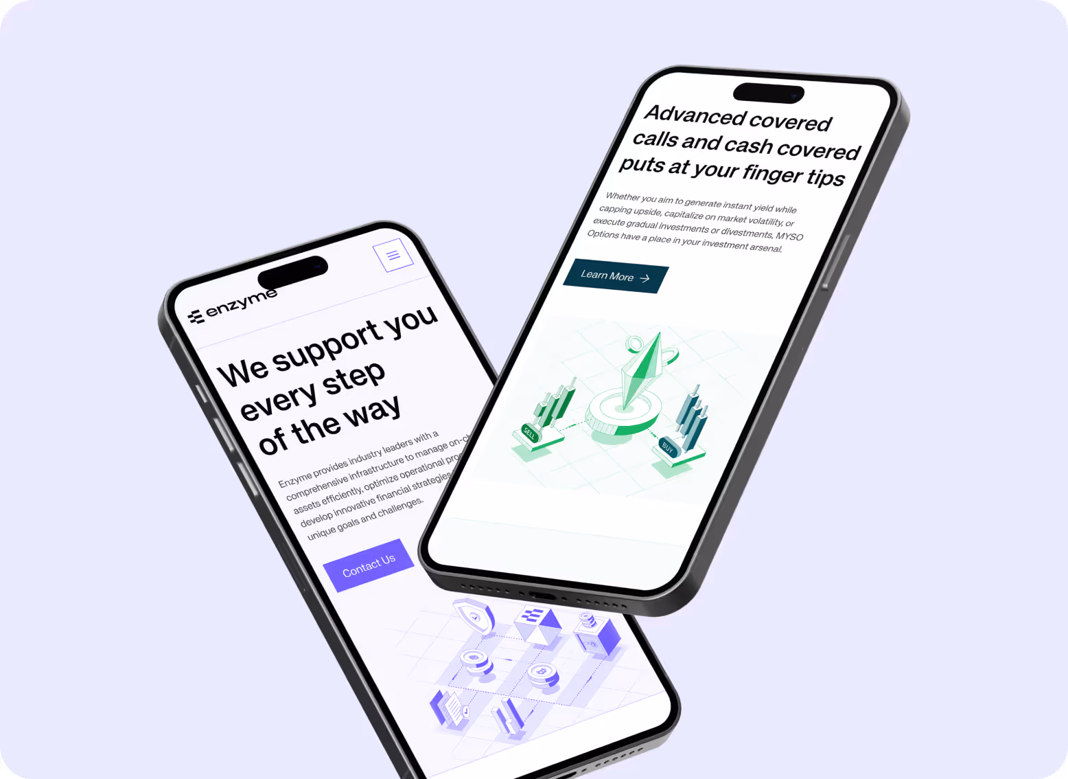 Arounda web designers reflected Enzyme’s values of transparency, control, and innovation. We created custom isometric illustrations, smooth animations, and interactive elements to simplify advanced concepts and guide users through layered services. And a modular system helps easily scale the platform.