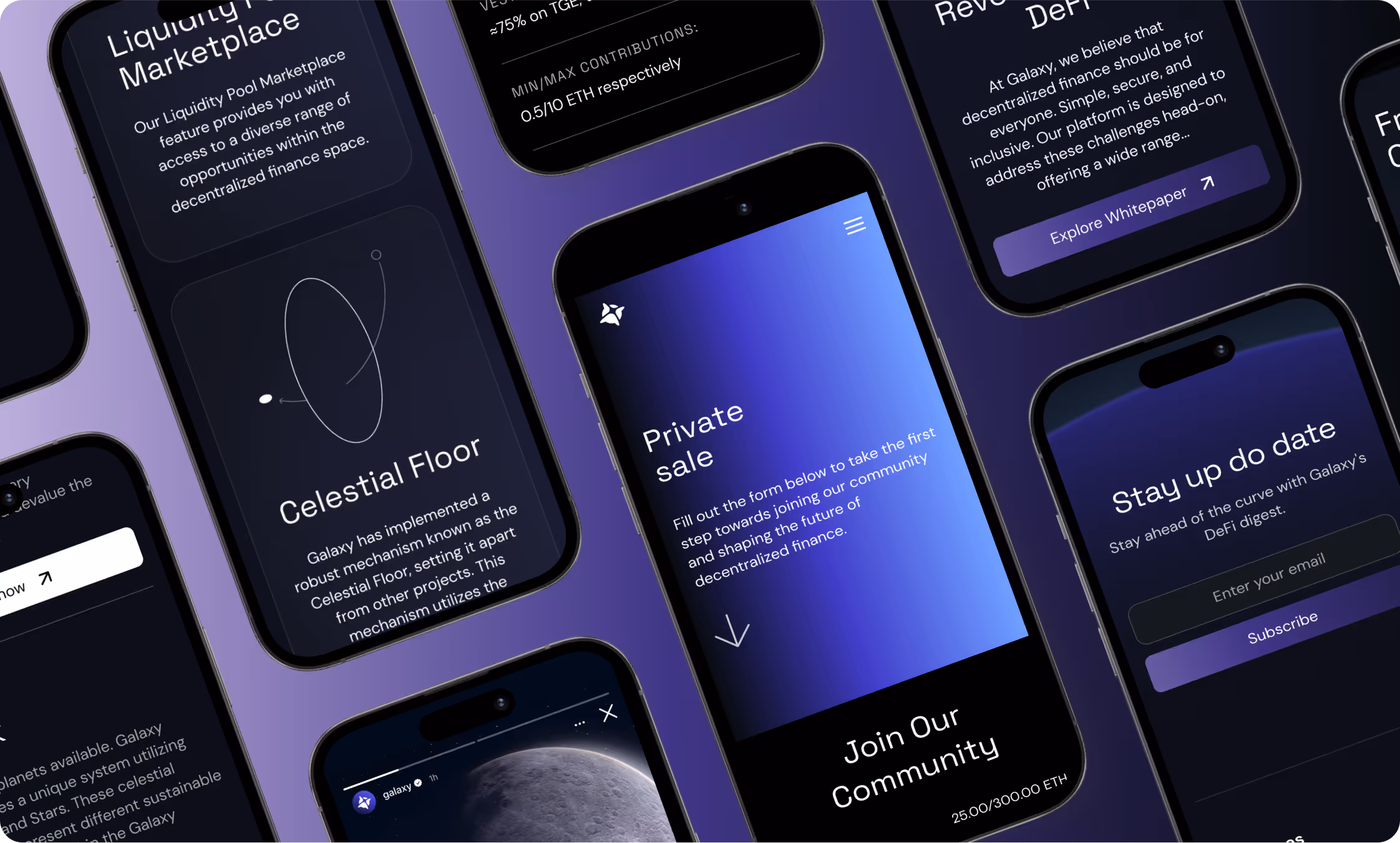 Arounda team designed the website based on the new brand identity. The layout highlights Galaxy’s core features and keeps the experience intuitive, clear, and engaging. After finalizing the design, our dev team built the site in WebFlow with fast performance and full responsiveness.