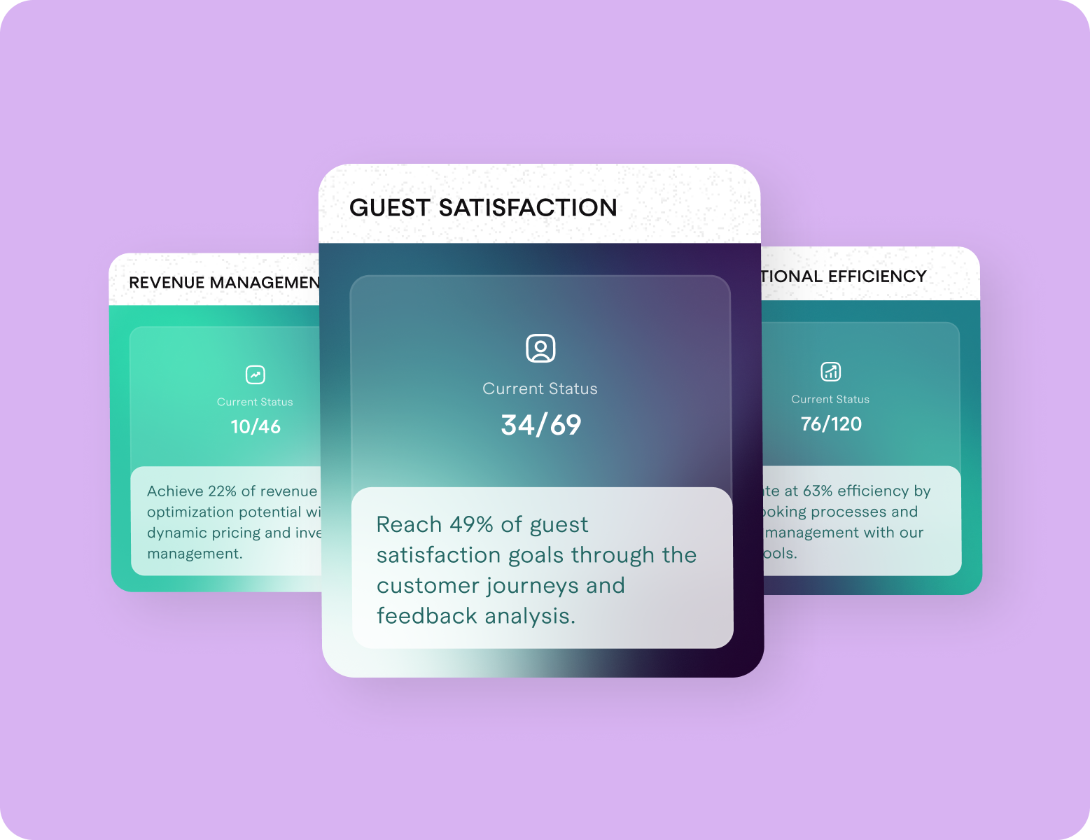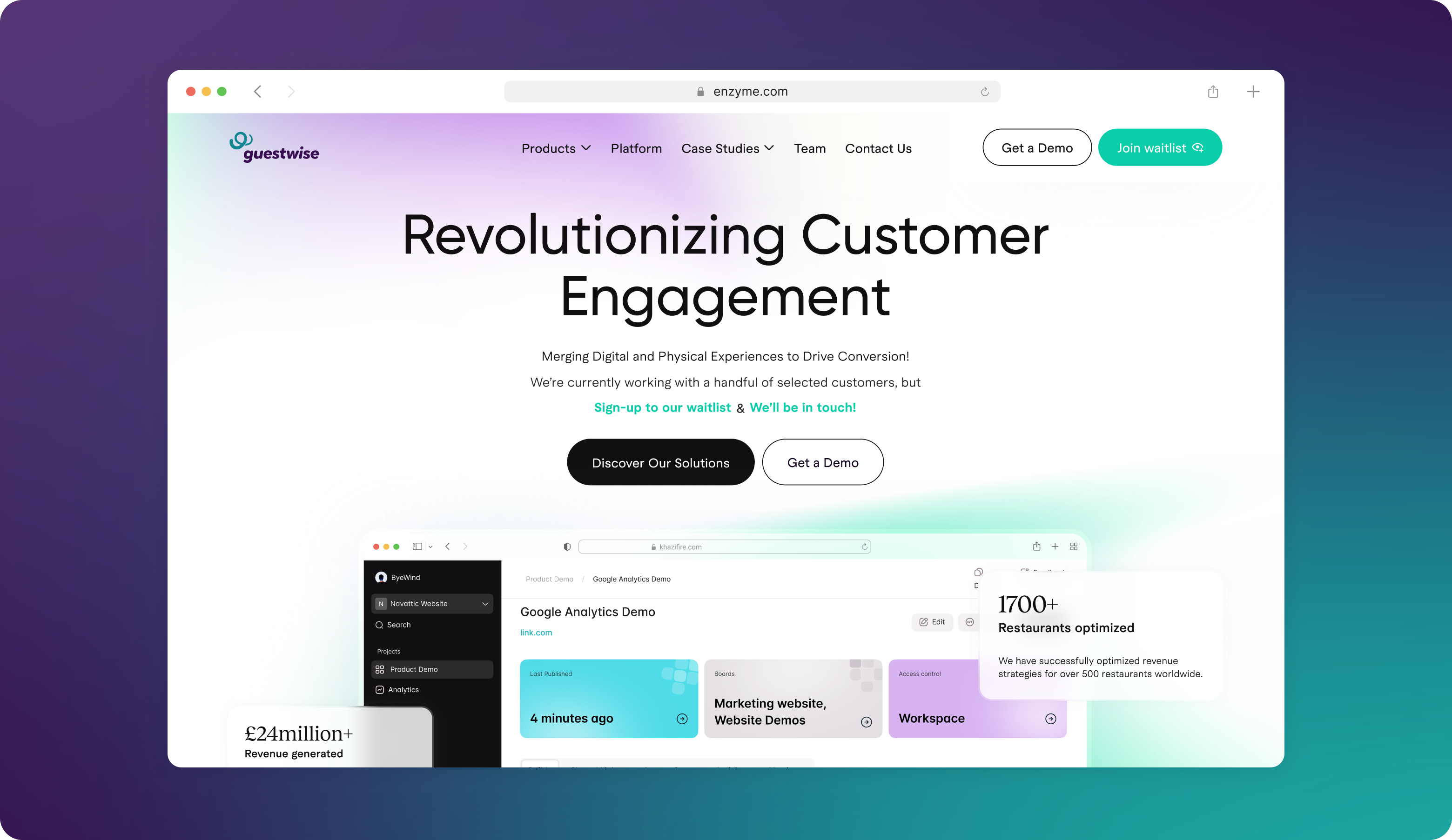 We created an intuitive and conversion-focused marketing platform. A new insights section visualizes key performance data through an easy-to-read chart. Simplified flows and a clearer structure now present Guestwise more effectively and help hospitality teams increase engagement and conversions.