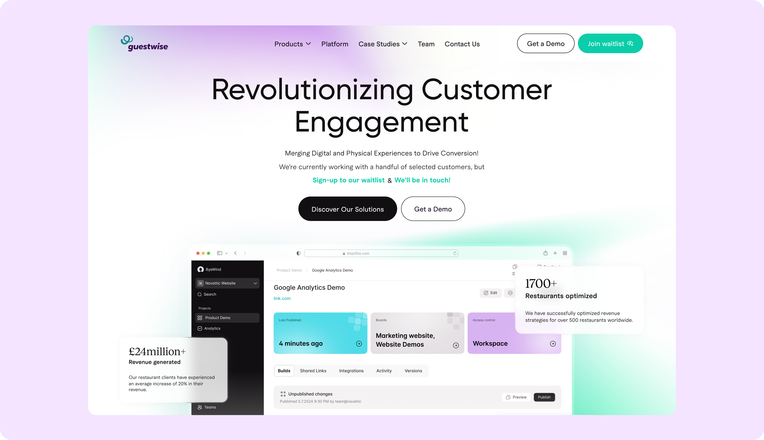 Guestwise came with a website that was text-heavy and didn’t reflect the clarity or value of their marketing platform. Our task was to redesign the experience for simple, accessible, and engaging interactions. We also needed to create an intuitive interface for complex marketing automation features.