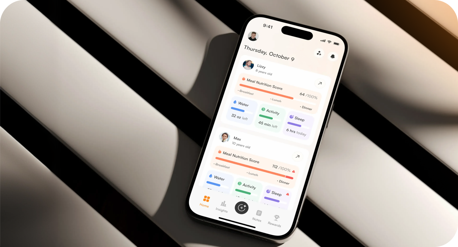The UI now has a clear hierarchy, large spacing, and consistent navigation. Parents can log meals, water, activity, and symptoms without friction and access actionable insights without searching. Warm beige tones and subtle microinteractions replaced the clinical aesthetic of typical health tools.