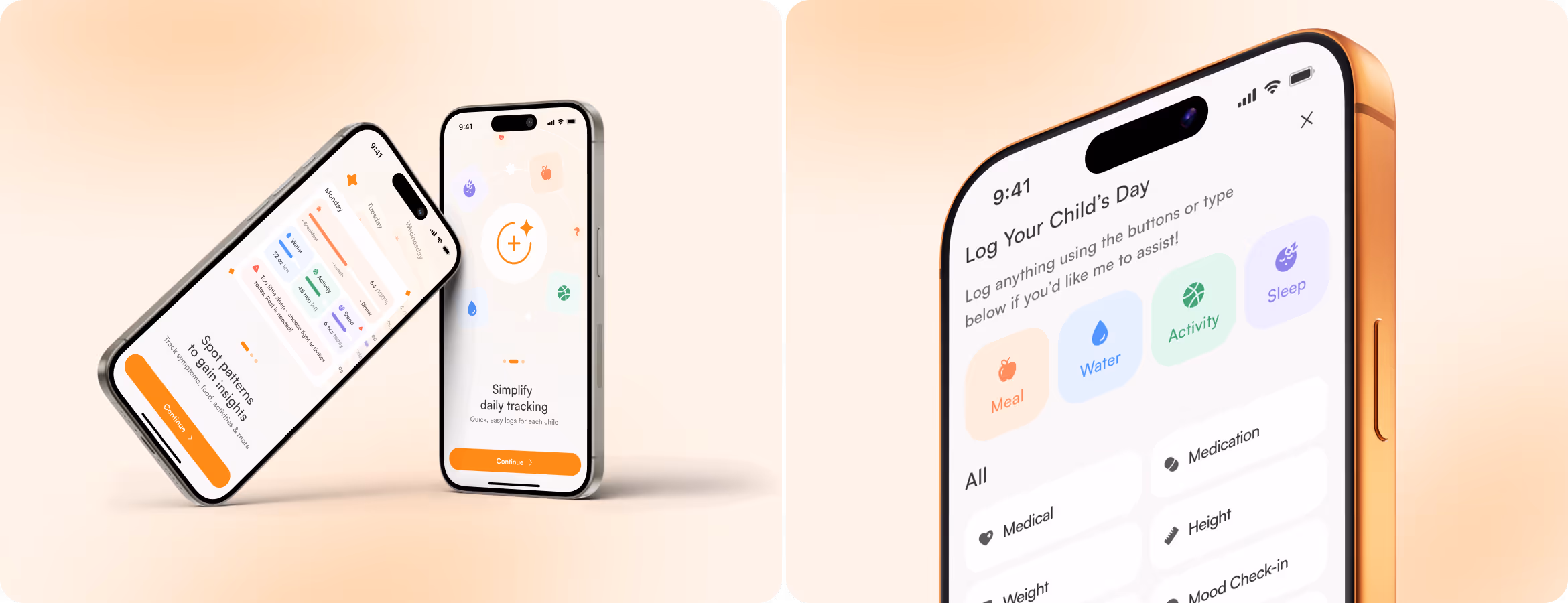 Competitor analysis revealed the apps with too many entry points, inconsistent navigation, and clinical color palettes. Their interfaces didn't make the product a supportive daily companion. Our goal was to reduce interface complexity, prioritize the parent's daily workflow, and use a warmer, more approachable visual language.