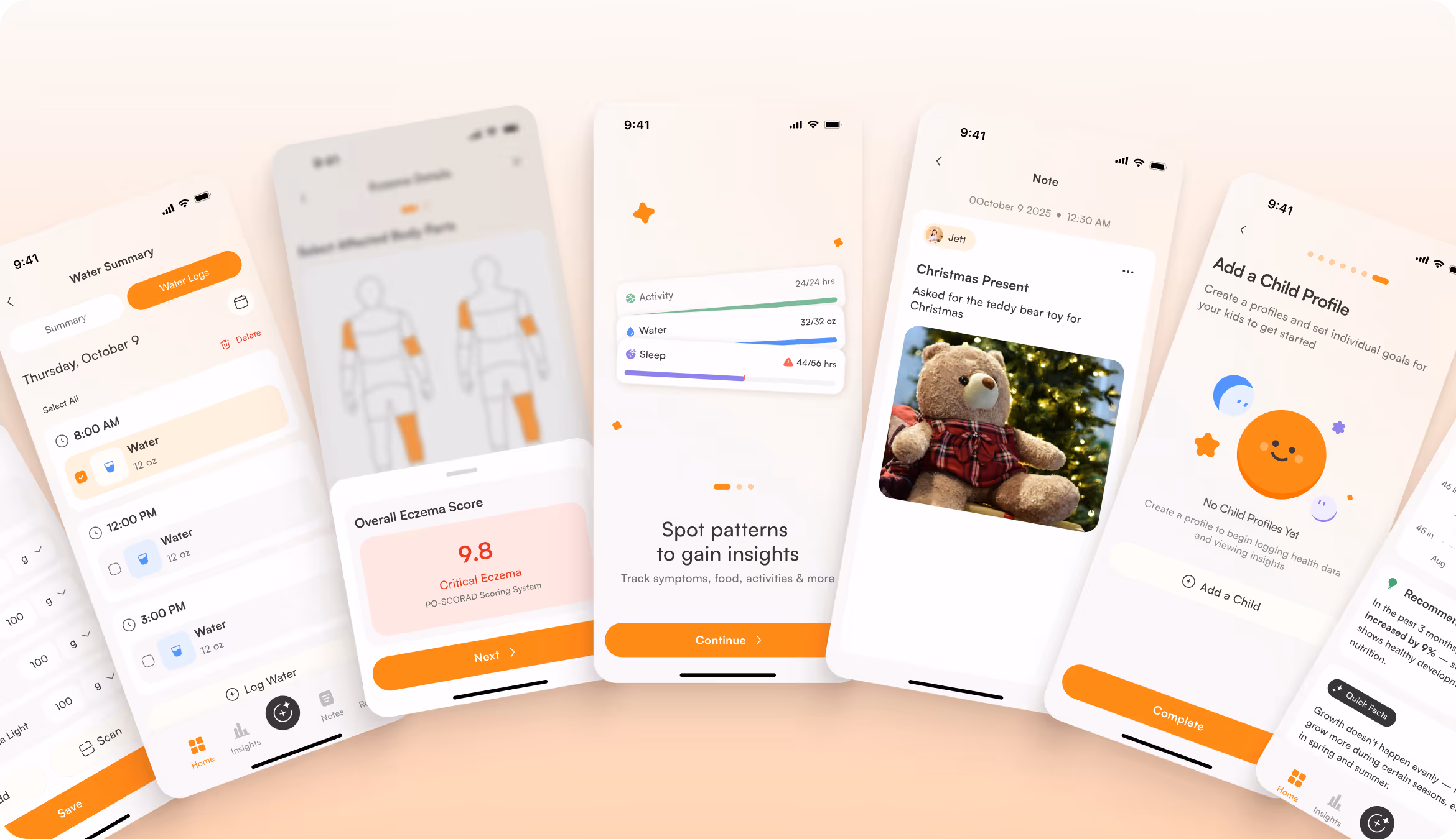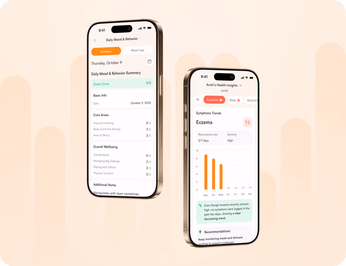 We understand the rhythm of a parent's day, so the design is mobile-first. It has unified typography and touch-optimized interactions that surface child health data without creating anxiety. A redesigned app is supportive and engaging enough to build a daily habit around. Parents can check in, understand what matters, and move on with confidence.