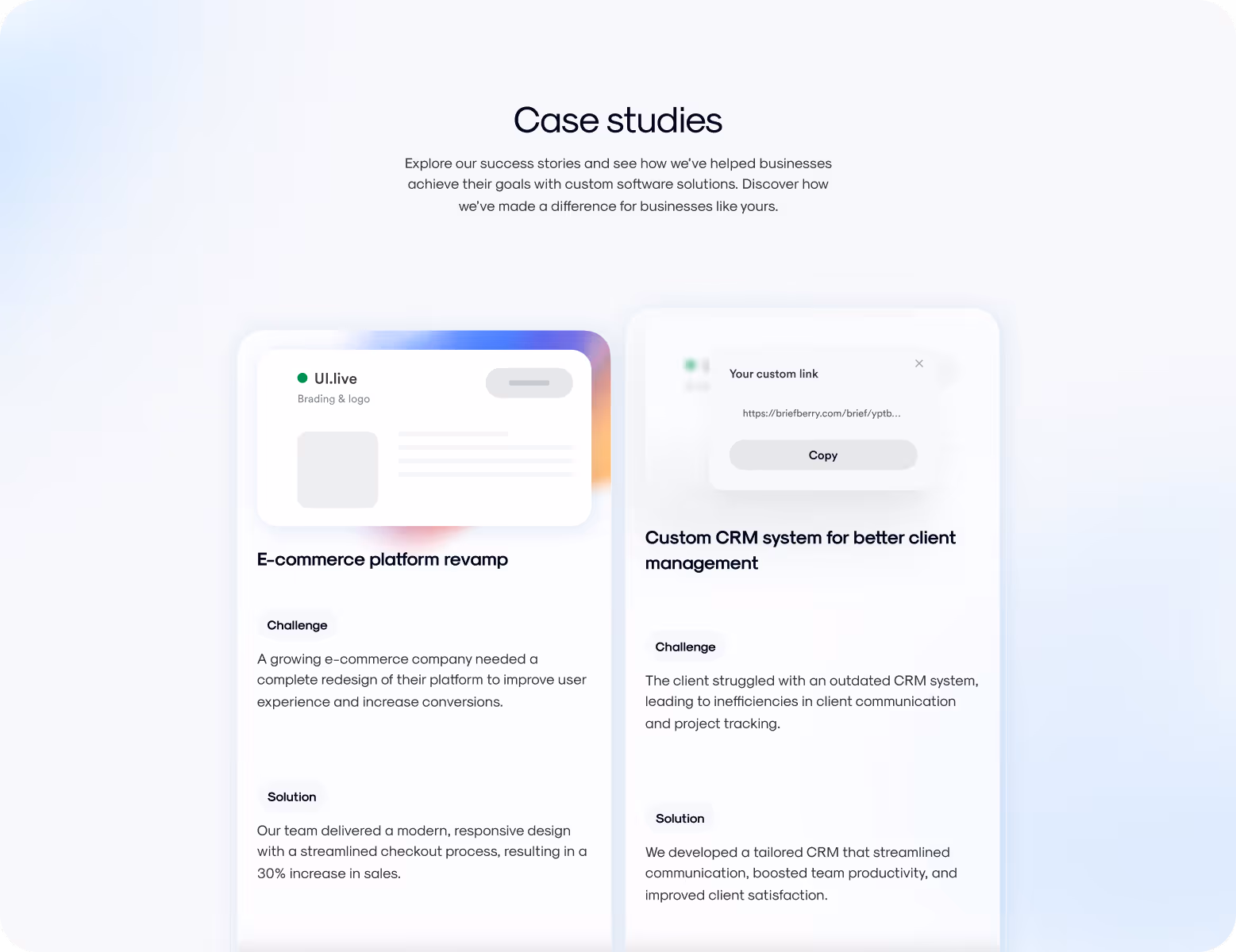 Our UI/UX designers focused on simplicity, ease of use, and clear visual flow. The new interface is intuitive, has a clear hierarchy, and fluid navigation. It makes every interaction effortless. Glassmorphism elements add depth and a modern feel. Subtle hover effects, animated transitions, and a sticky CTA keep users engaged. And soft gradients + linear illustrations bring clarity to complex information and give the design personality and function.