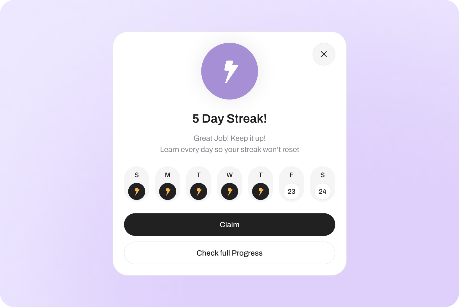 Daily learning activity - The combination of a daily learning feed, streak prompts, and progress tracking made studying an easy part of users' routine.